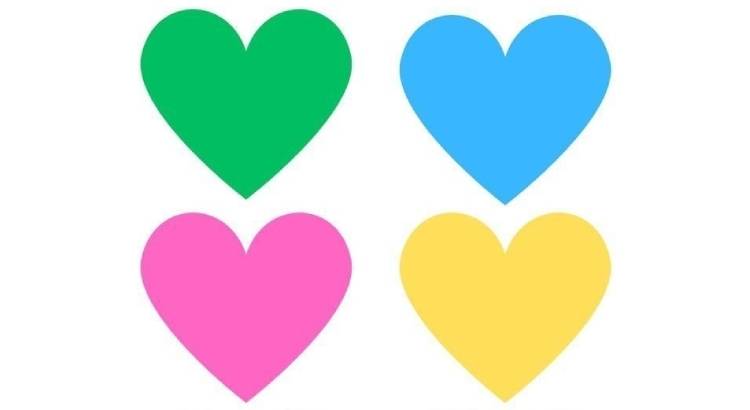 Скачать и распечатать сердечки разных цветов (на одном листе): розовое, сиреневое, голубое, желтое, зеленое, оранжевое, синее и красное.